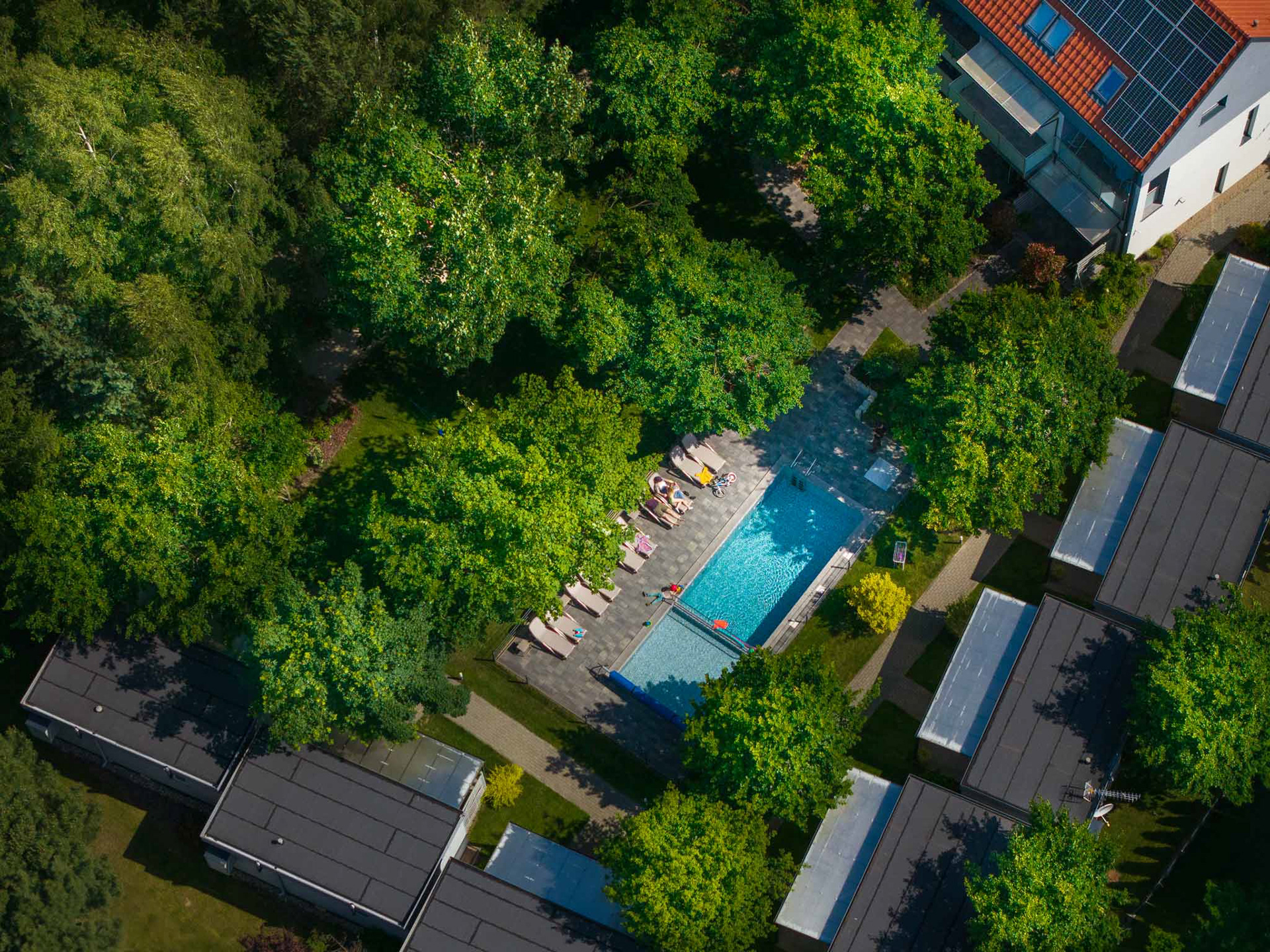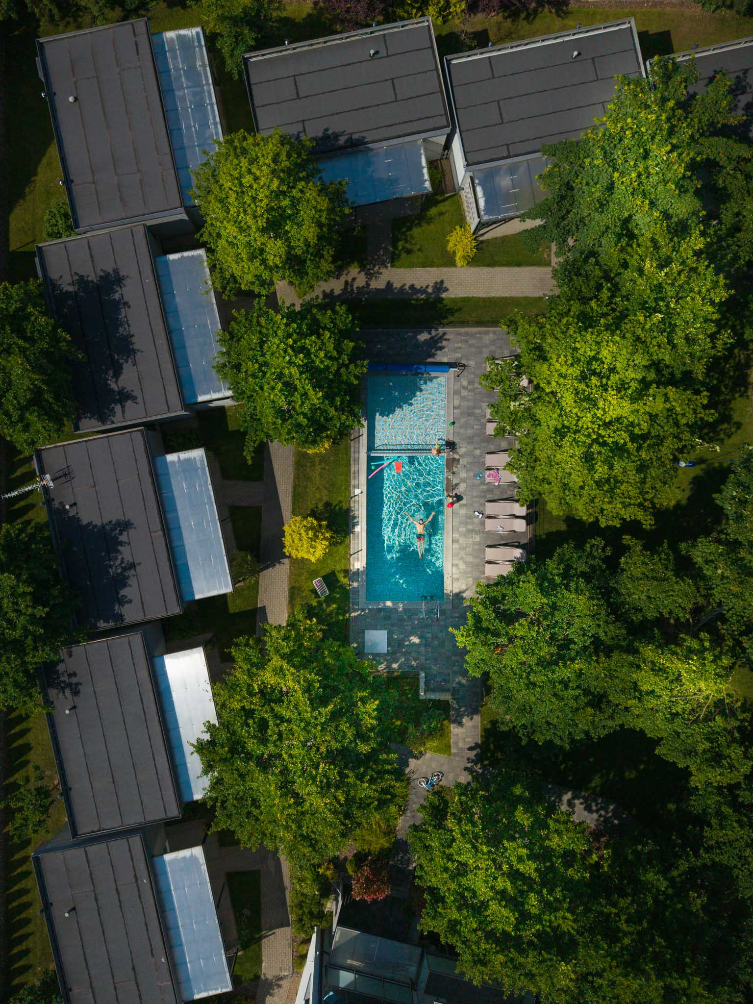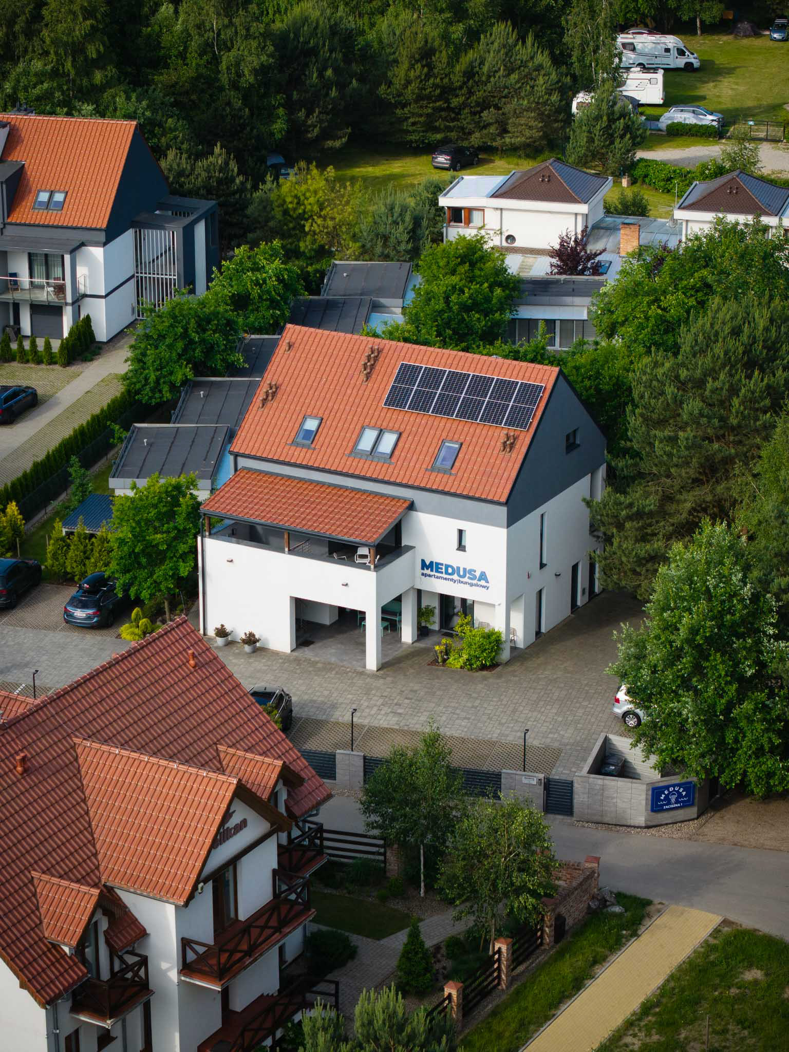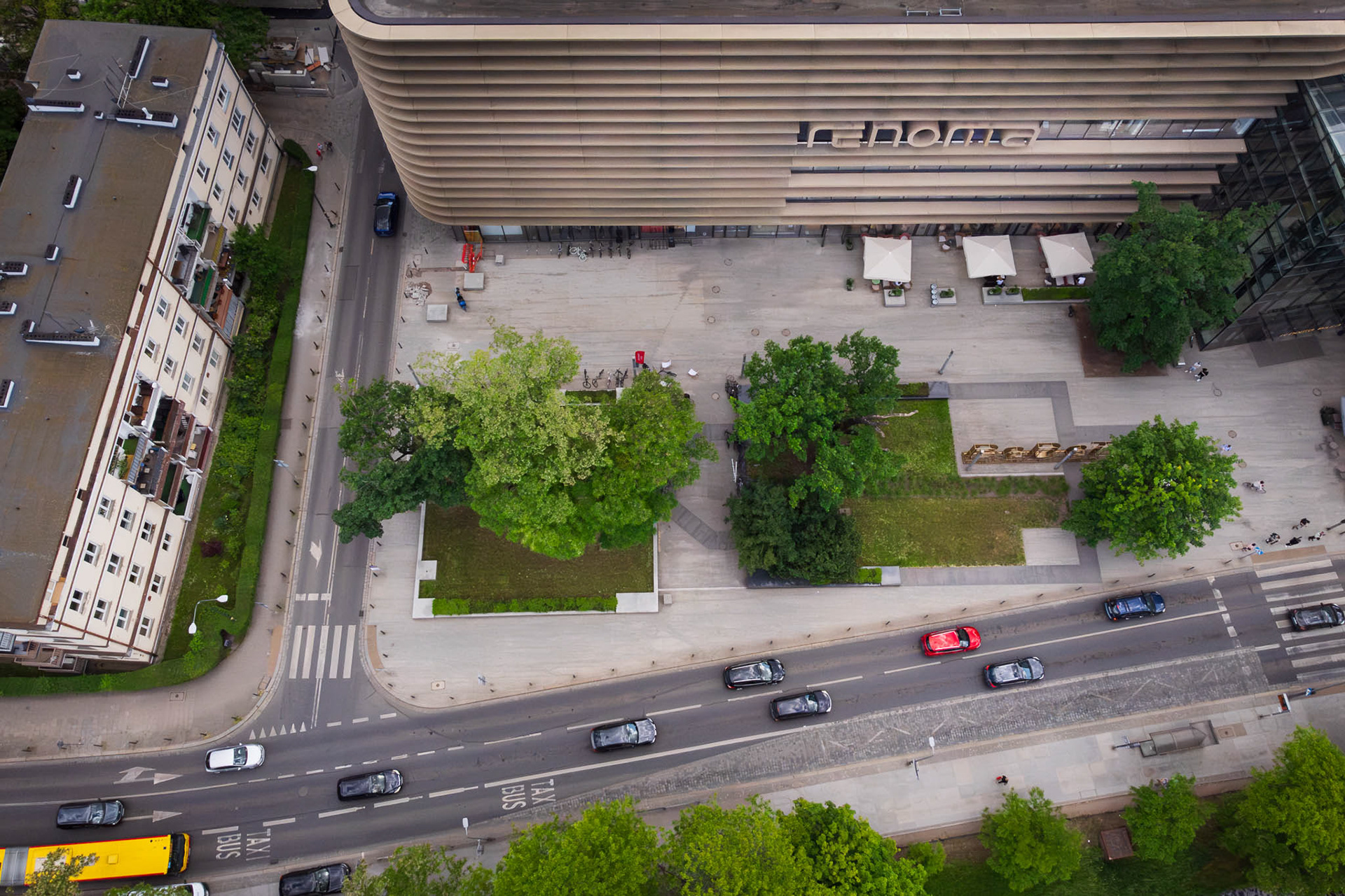 Perspektywa, której nie widać z poziomu ulicy. Ujęcia z drona pozwalają pokazać skalę, układ przestrzeni i relacje między elementami. Takie zdjęcia są doskonałym uzupełnieniem reportażu eventowego, fotografii architektury czy relacji z wydarzeń sportowych.